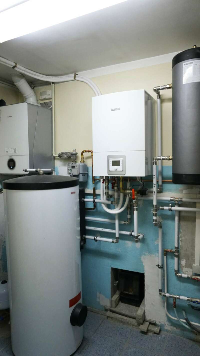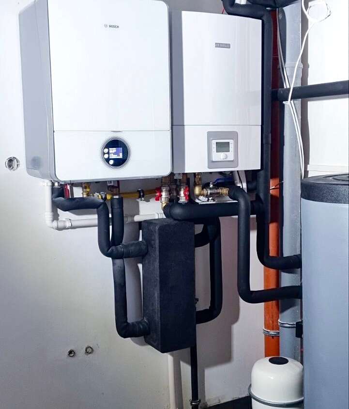 В частном доме была произведена замена старо газового котла на новый совместно с тепловым насосом воздух + вода (Гибрид Bosch)